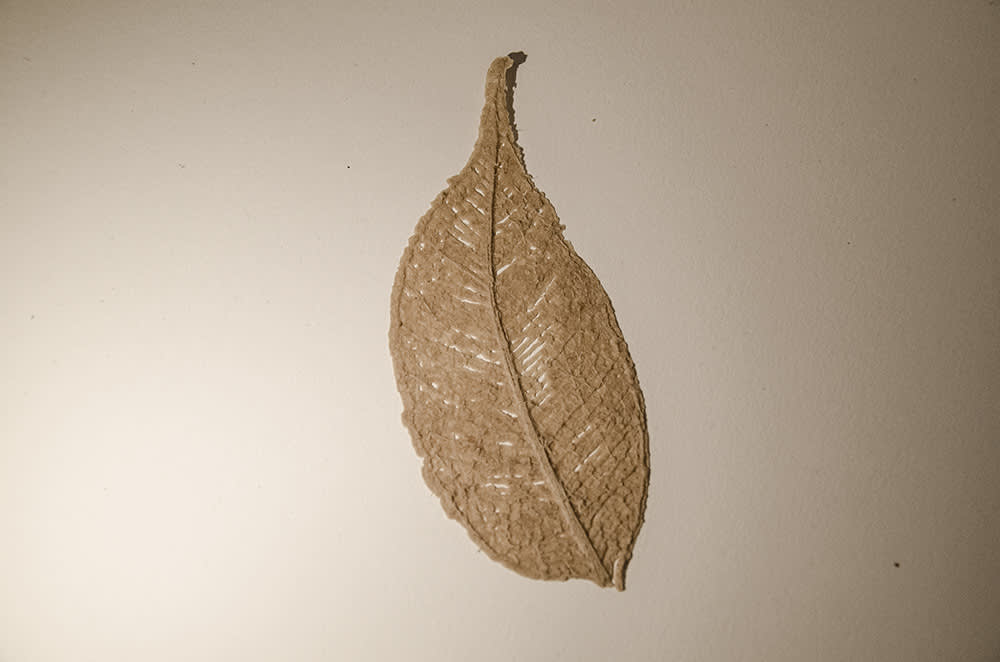 Impression 3D d'une feuille après numérisation et traitement à l'aide d'un logiciel traitement photo pour obtenir des niveaux de gris, traduits ensuite en élévation dans un logiciel de modélisation 3D
